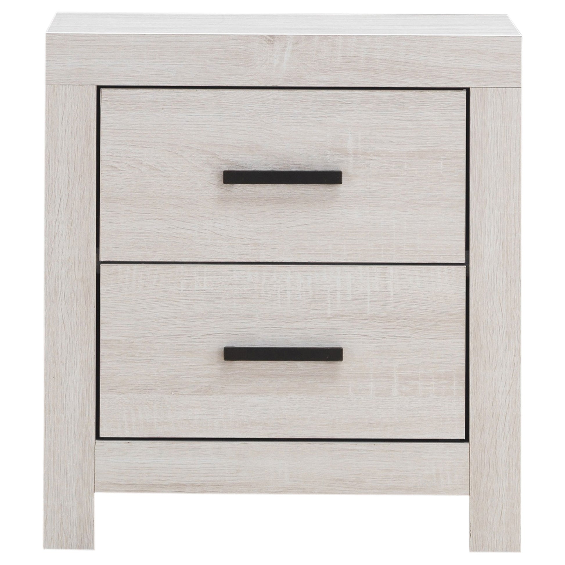 This two-drawer nightstand brings modern style and practical storage to the bedside. Its clean-lined frame complements contemporary spaces, while two spacious drawers provide room for nighttime essentials. Dark bronze handles contrast beautifully against the engineered wood construction and durable laminate veneer. Designed for everyday use, this nightstand offers both style and function in a compact footprint.