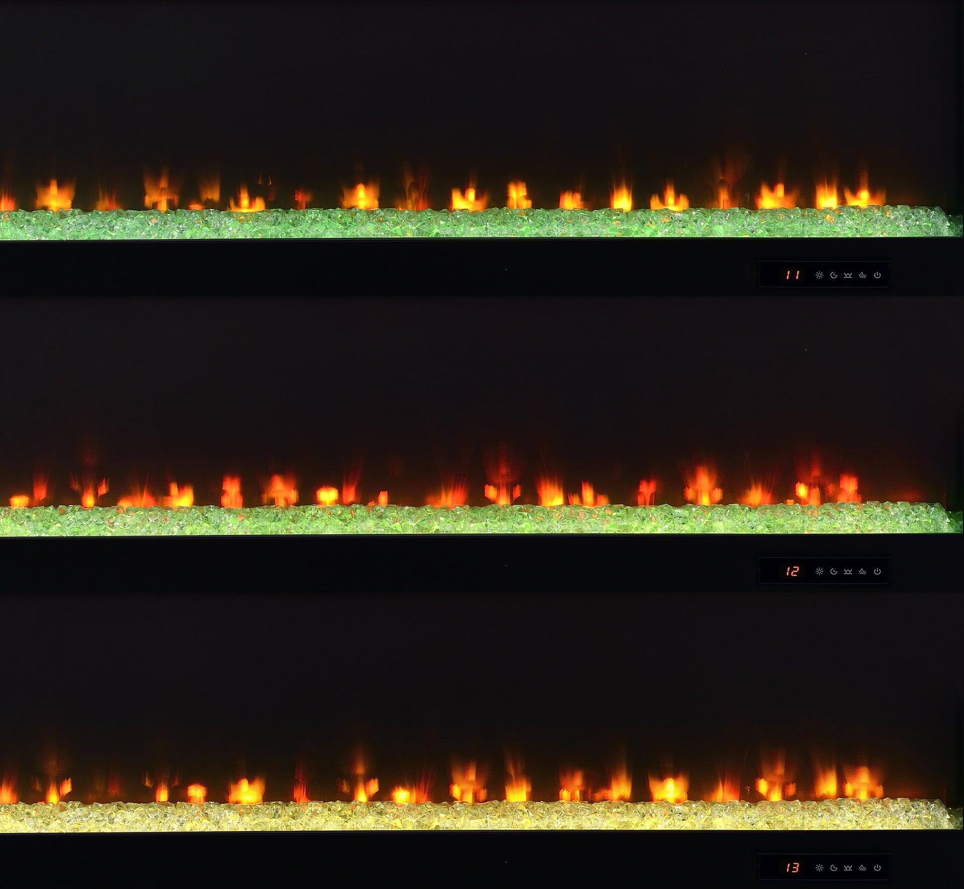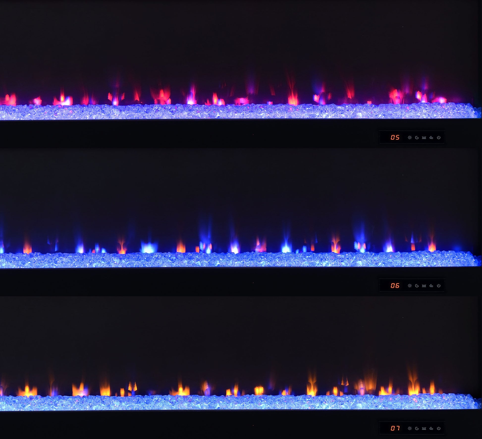 β’ TV stand fireplace console with flame visualizer and crushed acrylic crystals for visual warmth
