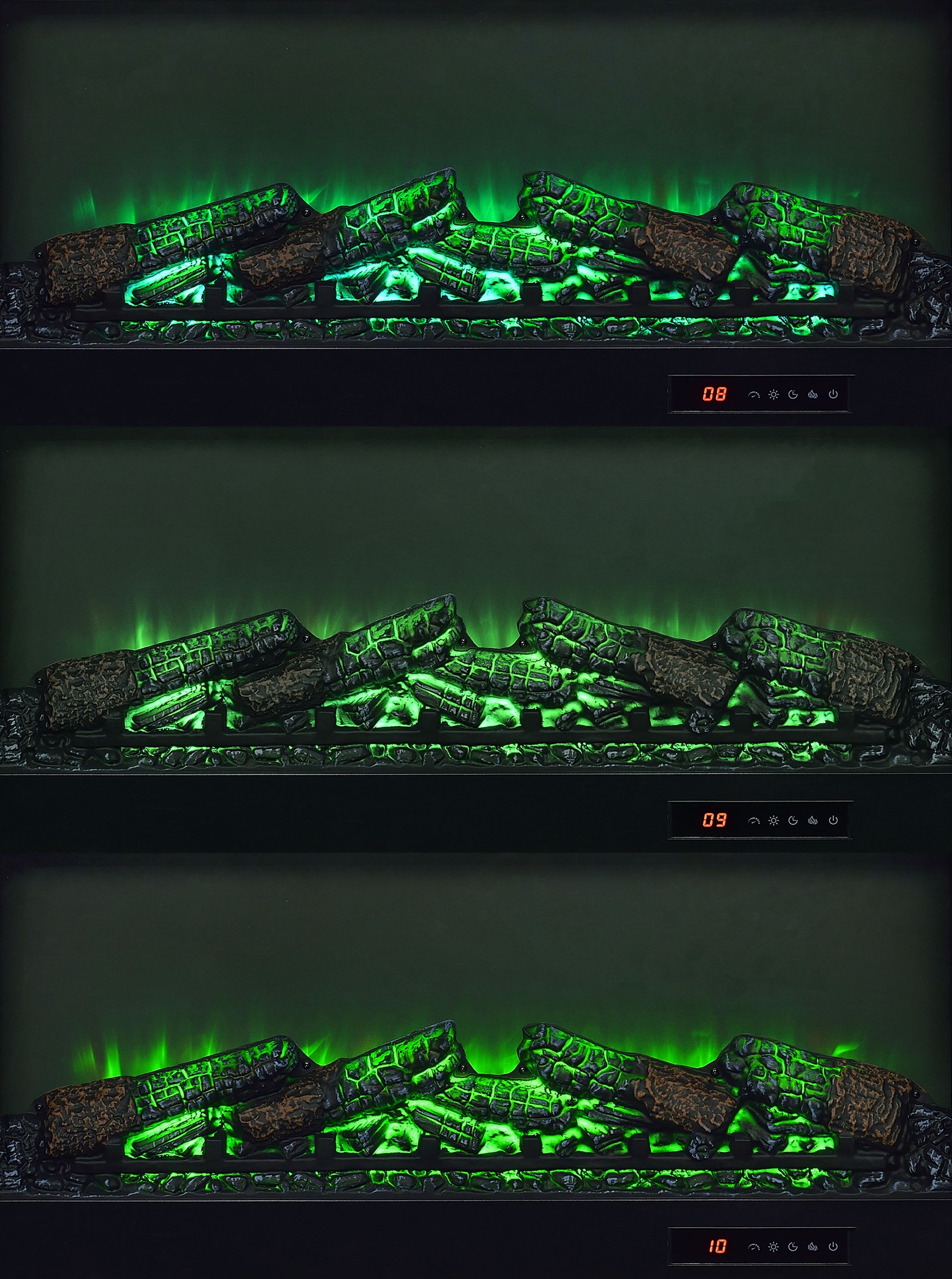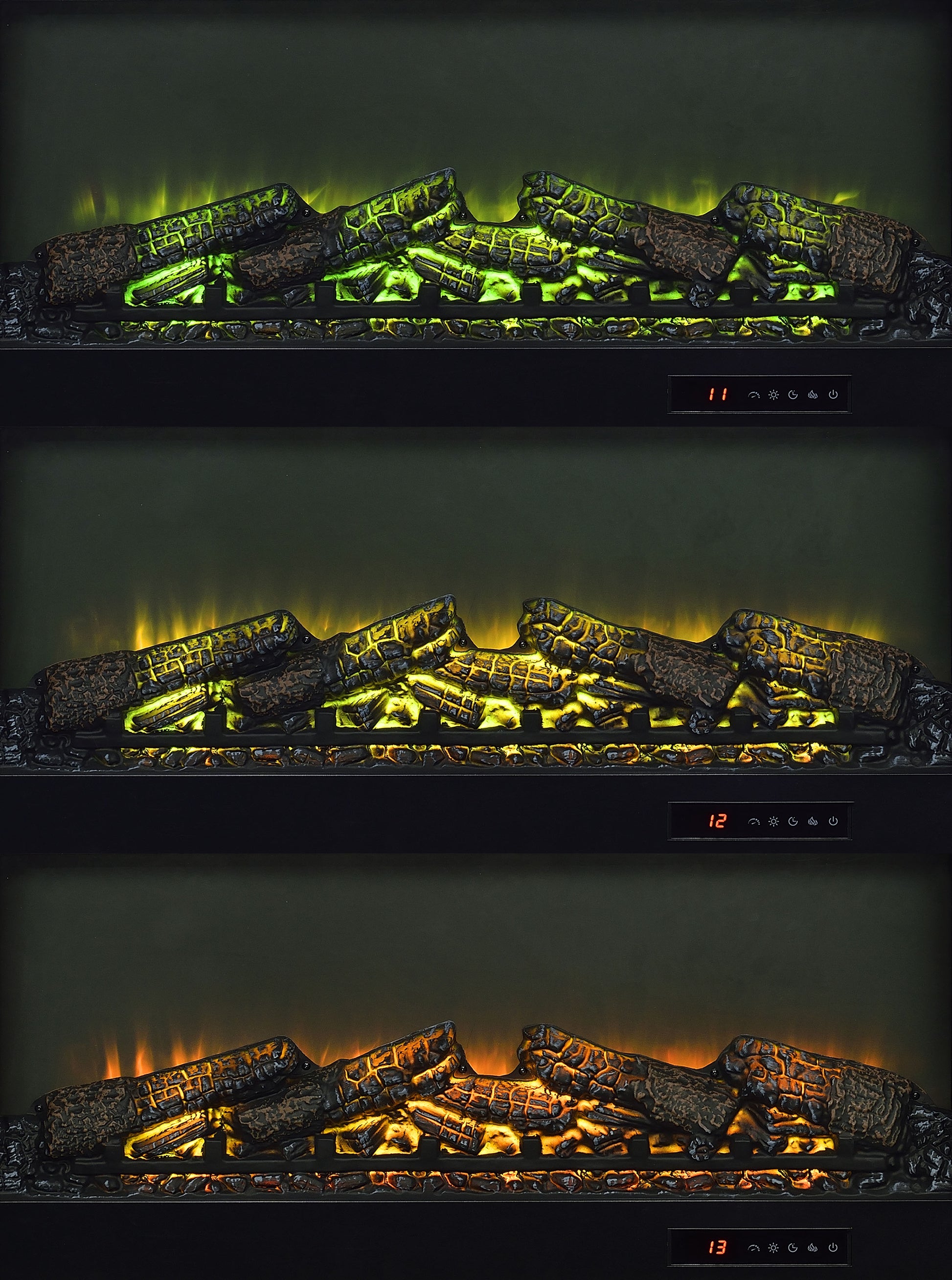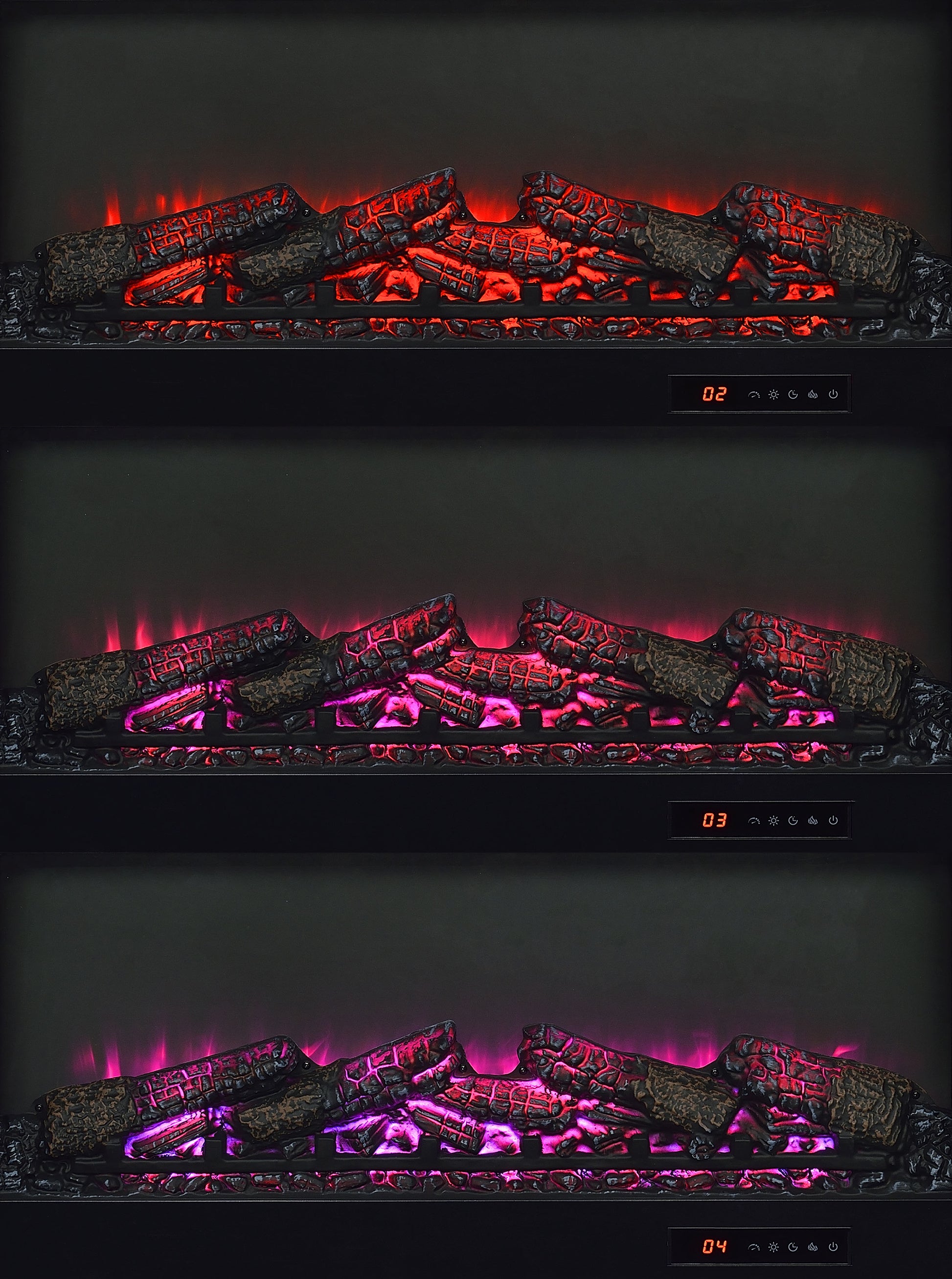 β’ Center fireplace insert without heat function and glowing ember display for cozy ambiance