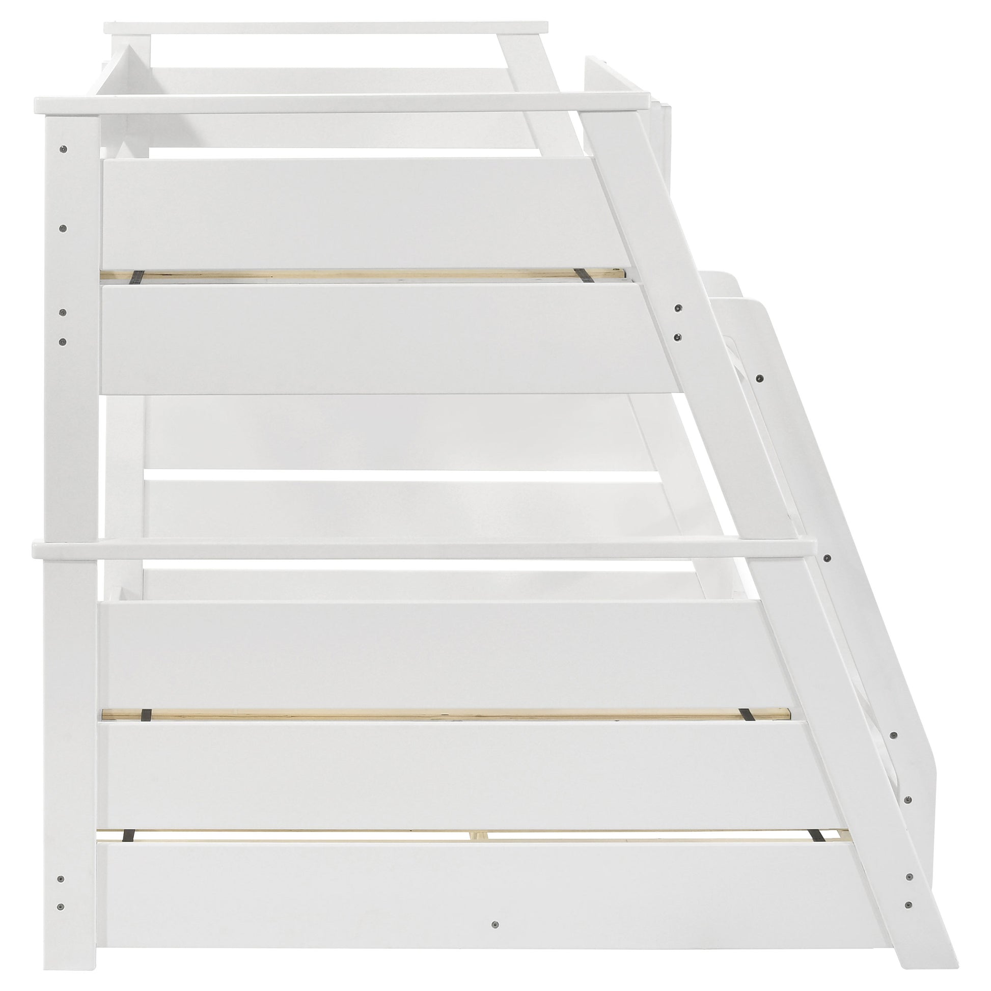 β’ Reversible angled ladder provides versatility and easy access to the top bunk