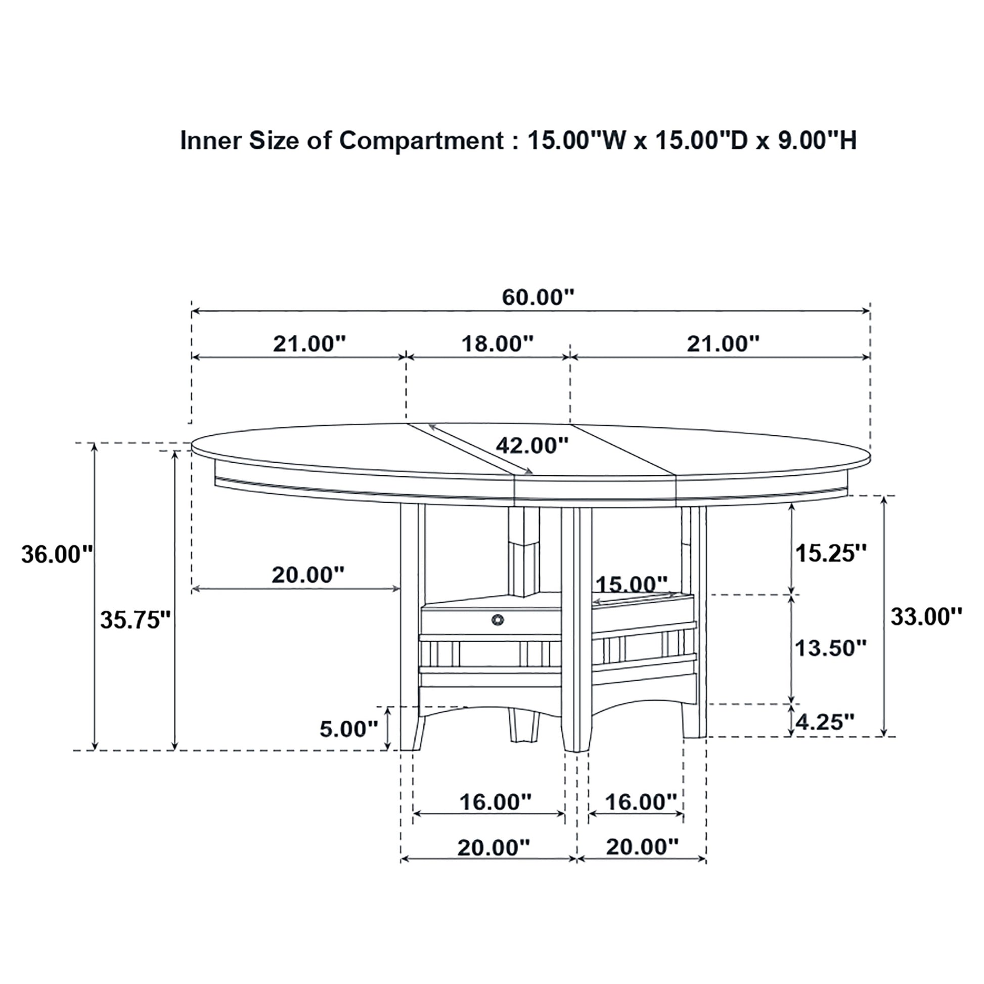 Create visual interest in a small space with this five-piece dining set. Light chestnut and espresso hues on the counter height table creates a warm two-tone effect. Welcome more family and friends with the built-in leaf. Store dinnerware in the built-in storage unit on the base of the counter height table to accommodate guests easily. The smooth legs of the table and four stools invite an open feel into a modern entertainment room.