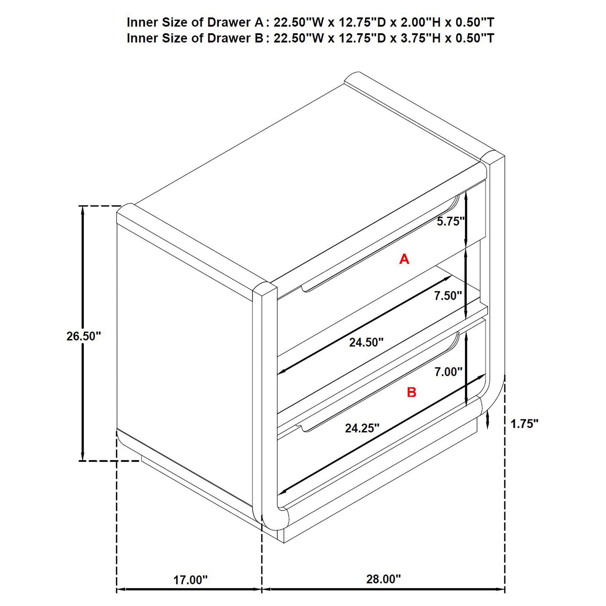 Leandro 2-drawer LED Nightstand with USB Burnished Black