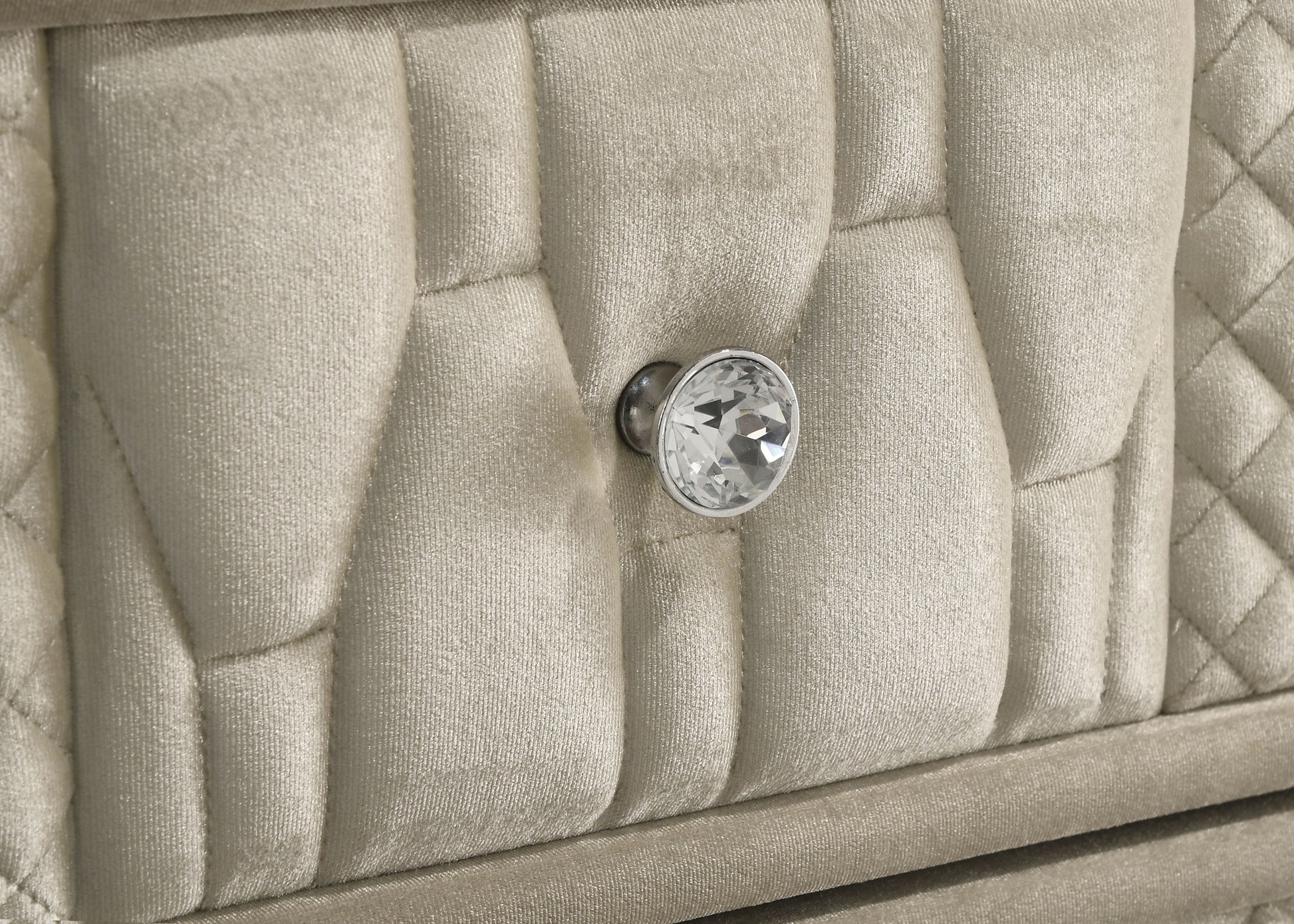 β’ Crystal knobs and solid rubberwood legs provide both sparkle and structural support