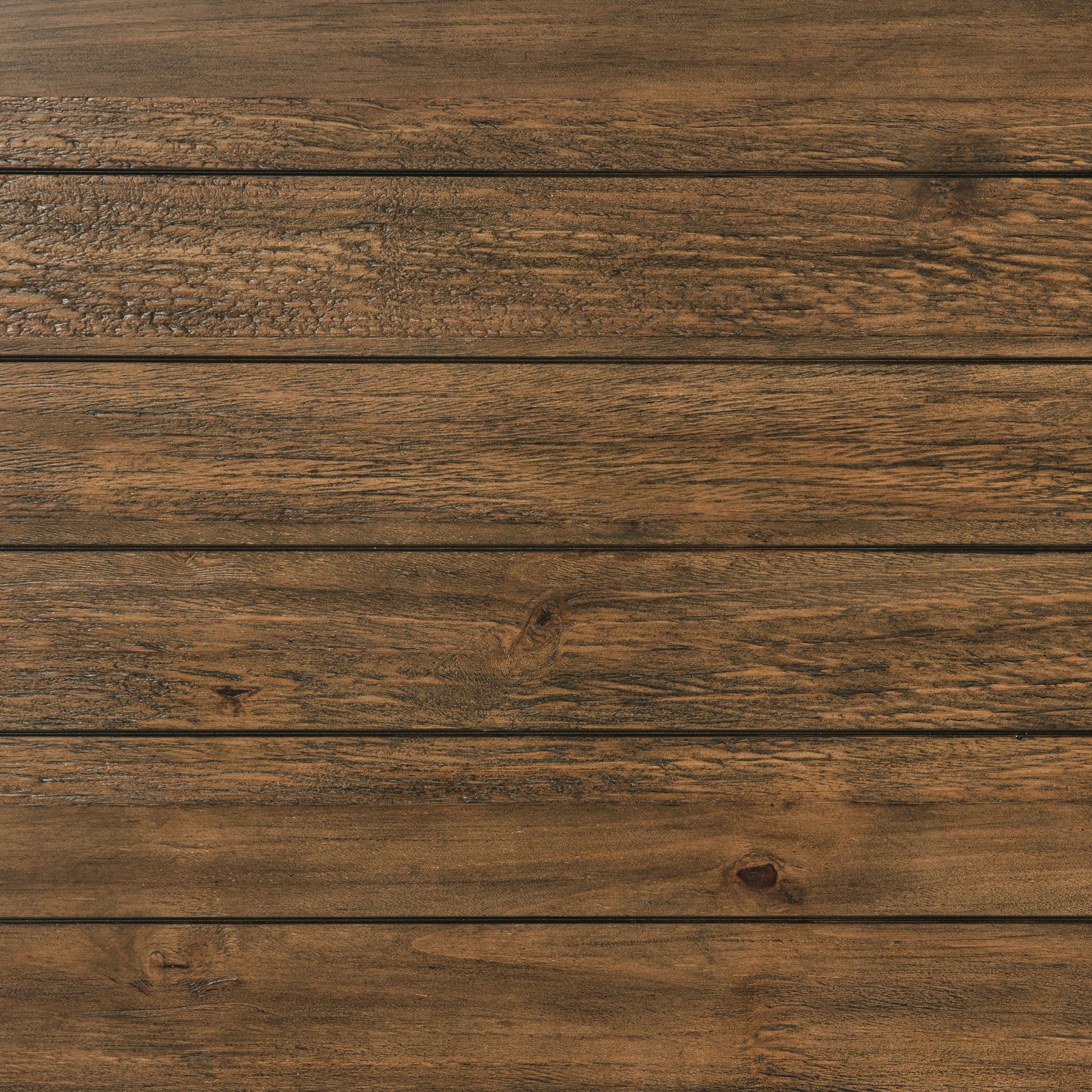 • Distressed brown finish enhances its worn appeal, creating a hint of farmhouse flair in your layout