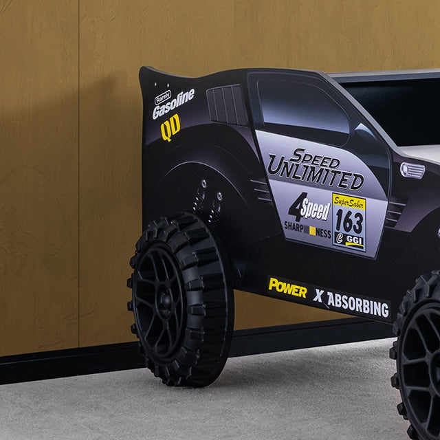 Now your child can experience the excitement of off-road racing in his/her own bedroom! This impressive bed boasts a glossy sturdy design, and is equipped with giant tires and working lights.